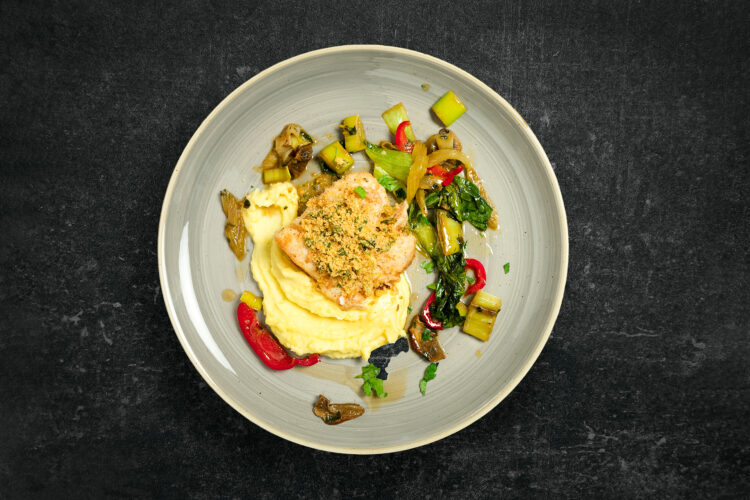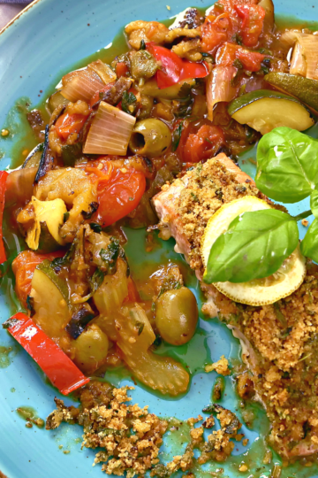 Łosoś z caponatą i pangrattato