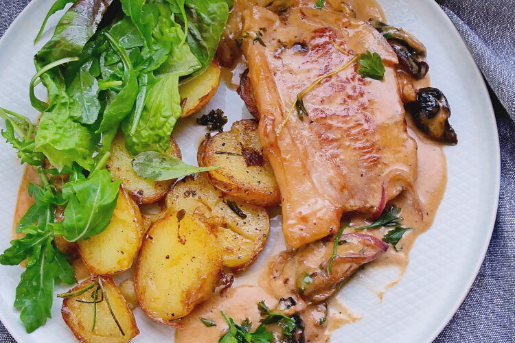 Dorsz z … no właśnie, z czym? Na pewno z puree, takim bardzo tradycyjnym, prosto z francuskiej szkoły kulinarnej. Ale potem już trochę bardziej skomplikowanie się robi. No bo papryka i słodki smak to od Basków, co wyczytałem u pana André Dominé w przewodniku po kulinariach francuskich. Ale grzyby to […]
