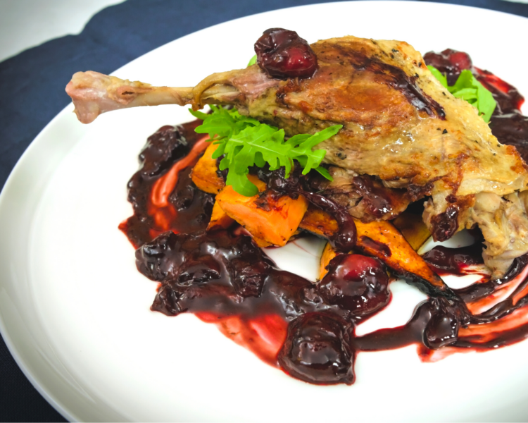 Kaczka konfitowana z wiśniami i czekoladą