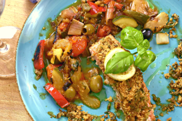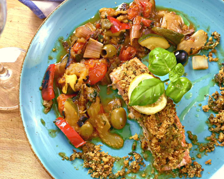 Łosoś z caponatą i … pangrattato