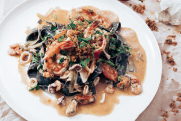 Czarne tagliatelle z owocami morza