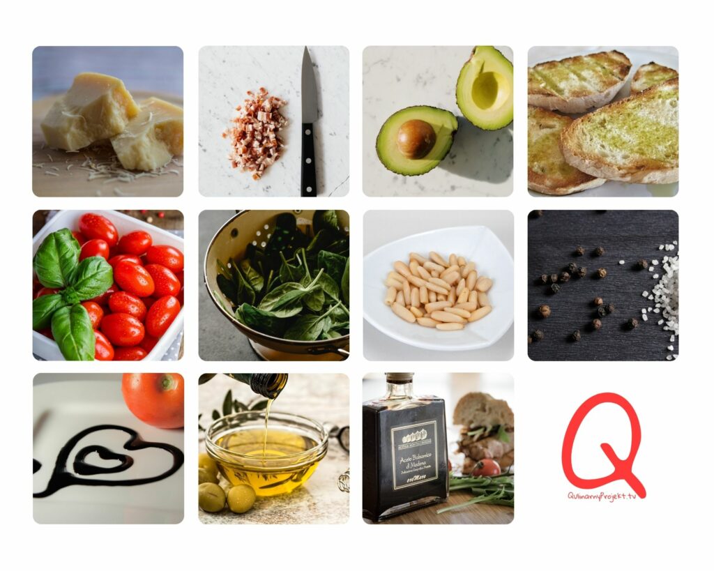 Taka sałatka, którą dawno temu, kiedy jeszcze nie parałem się gotowaniem, nawet w domu, w “corpo” pracując, znalazłem w swojej pierwszej, kupionej książce z przepisami. Potem przez lata przewijała się ta wersja sałatki przez moje zawodowe poczynania. Jej wytrawne i kwaśne smaki ze zdecydowanymi akcentami smażonej pancetty i słodkością prażonych pinioli zacząłem doceniać z czasem. Dziś to mój obiadowy zestaw. Wiem, że nie trzyma się w lodówce standardowo ani awokado, ani pancetty (zwykły polski boczek nie daje takich efektów, choć na filmie zrobiliśmy wersję z boczkiem), że piniole też nie są podstawowym, codziennym produktem w kuchni i nie da się jej zrobić tak od w potrzebie chwili, co czyni ją chociażby przez fakt konieczności planowania zakupów niezbyt łatwą, ale warto wykonać trochę pracy, bo już mieszanie składników i potem konsumpcja, z chłodnym białym włoskim winem a jeszcze lepiej prosecco, to sama przyjemność.